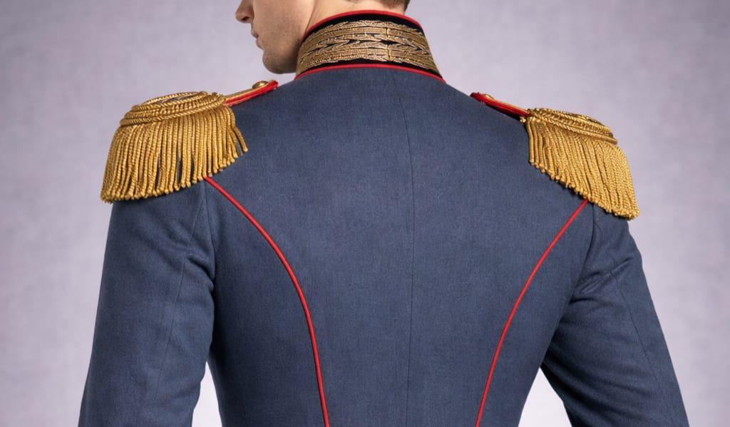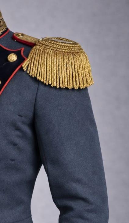 Shoulders: Decorative gold epaulettes
