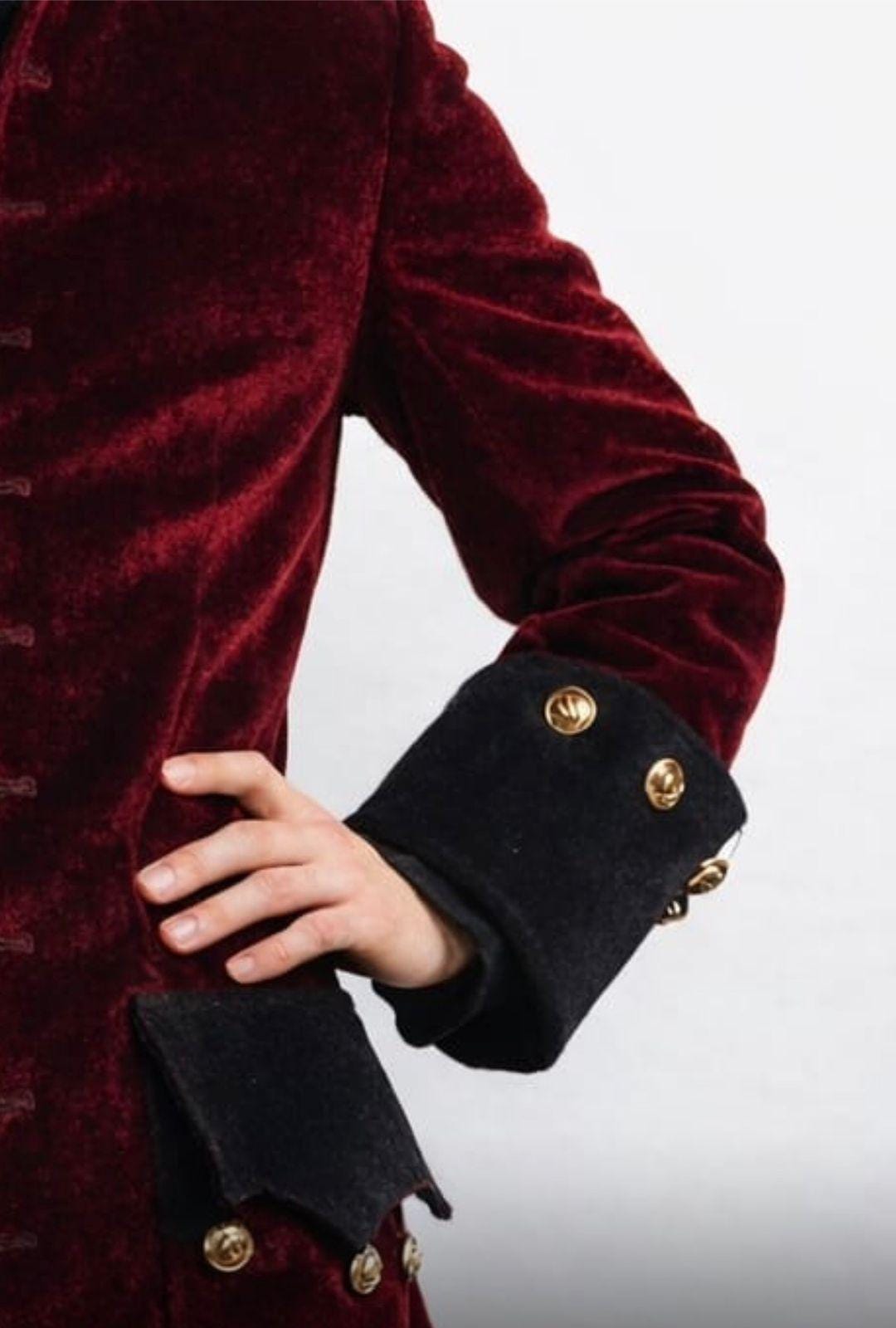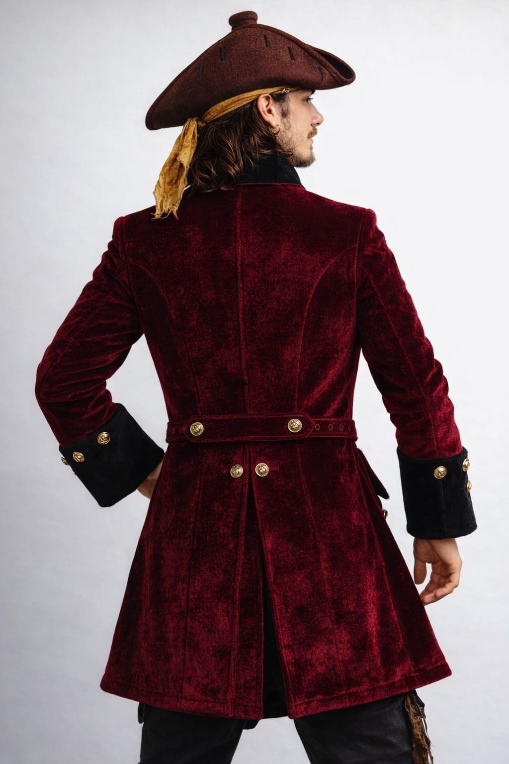 Men's Burgundy Velvet Pirate Coat – Steampunk Cosplay Frock Coat