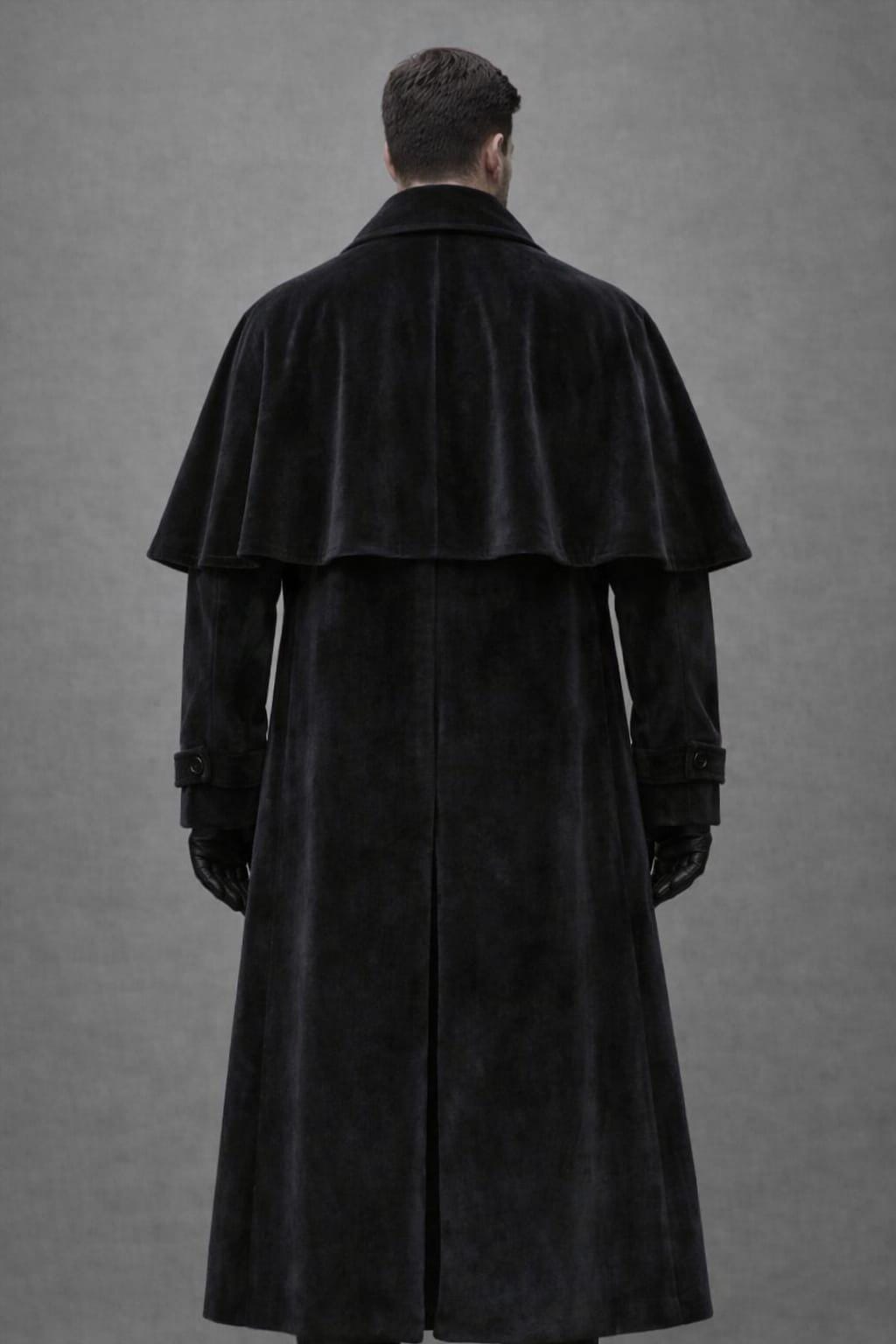 Men's Black Velvet Cape Coat – Victorian Steampunk Overcoat