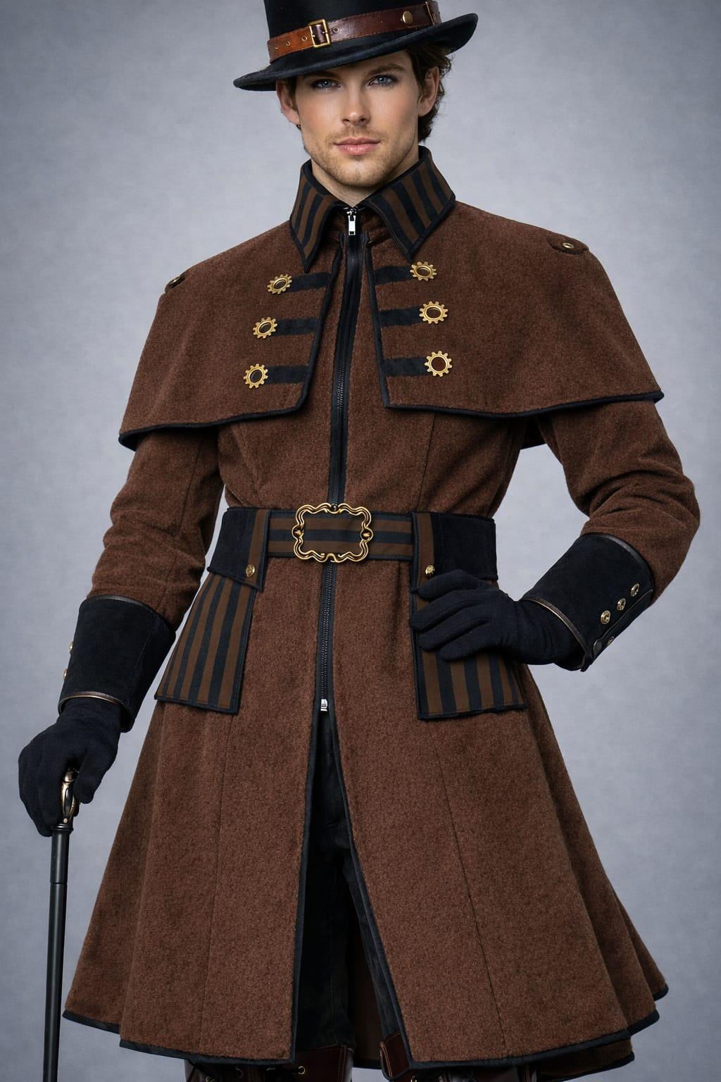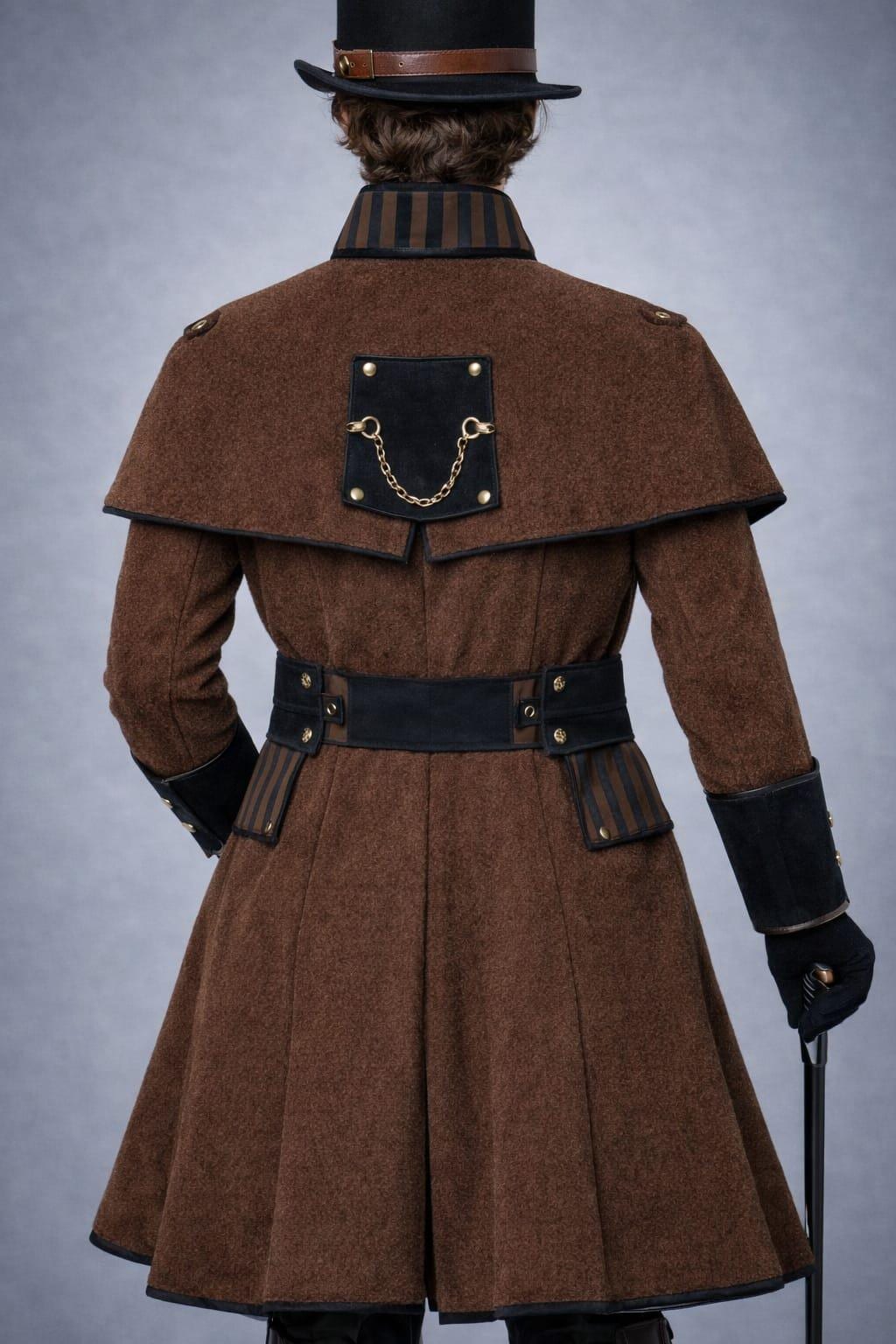 Inspired by Victorian, gothic, and steampunk aesthetics, this coat features a structured silhouette, premium detailing, and a commanding presence—perfect for cosplay, festivals, themed events, or statement streetwear.