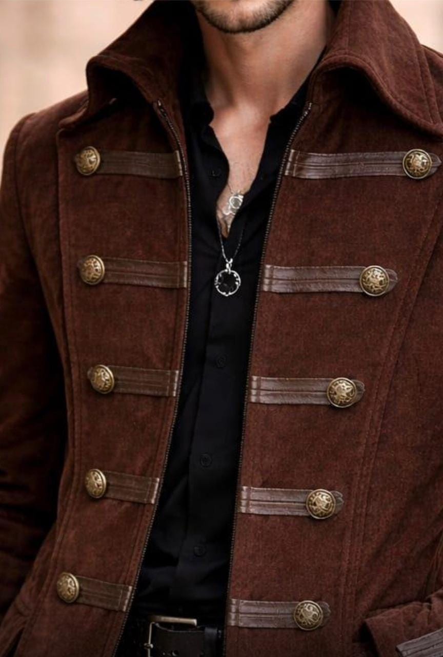 Designed for both style and comfort, this long coat is perfect for winter wear, gothic outfits, cosplay, renaissance fairs, theater performances, weddings, and statement street fashion. The tailored fit enhances the masculine shape while the military detailing adds a dramatic, vintage edge.