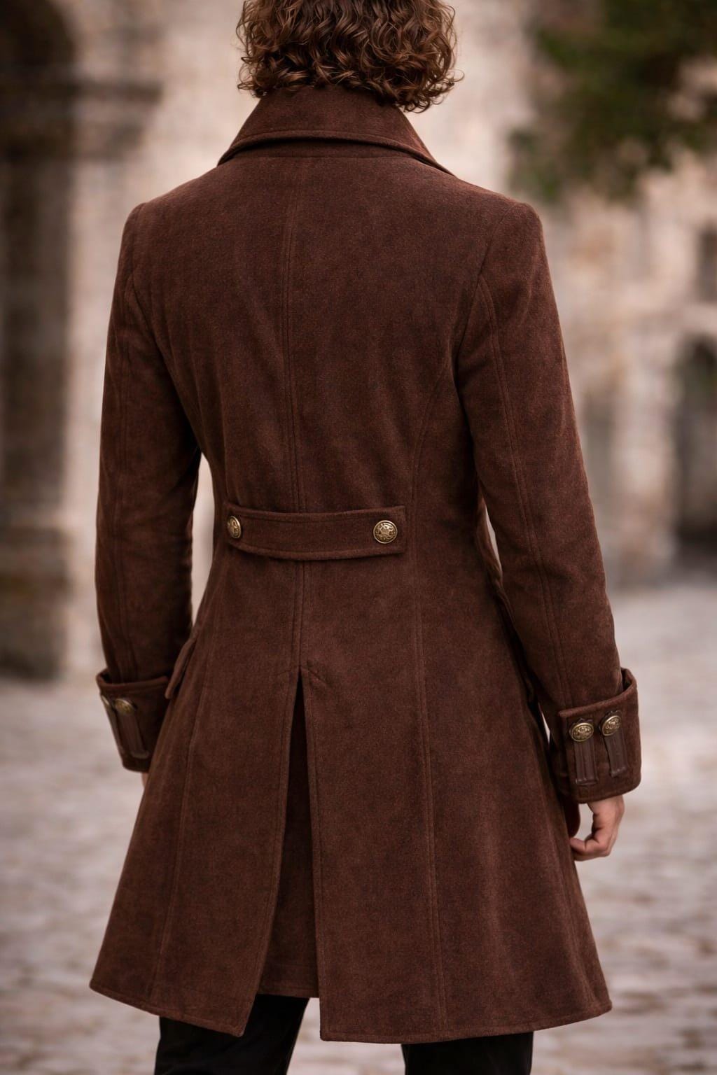 Men's Victorian Wool Military Coat – Brown Steampunk Gothic Men Jacket