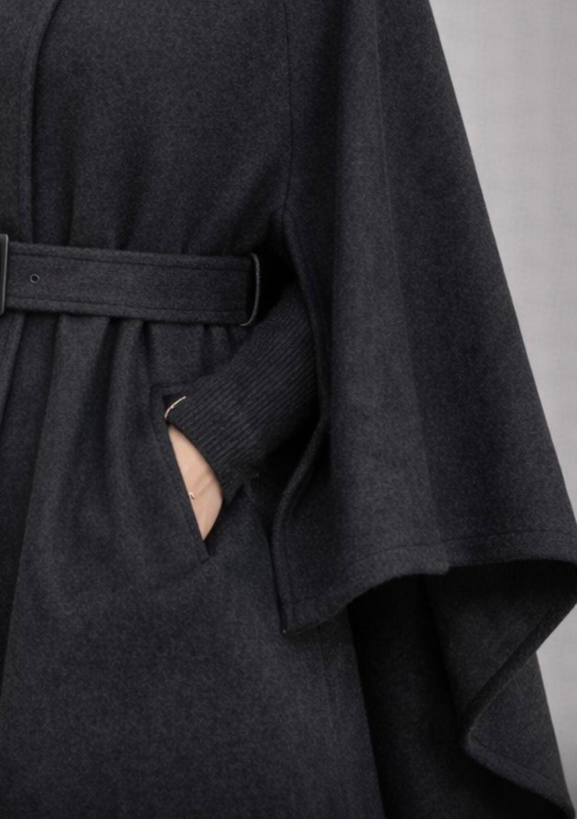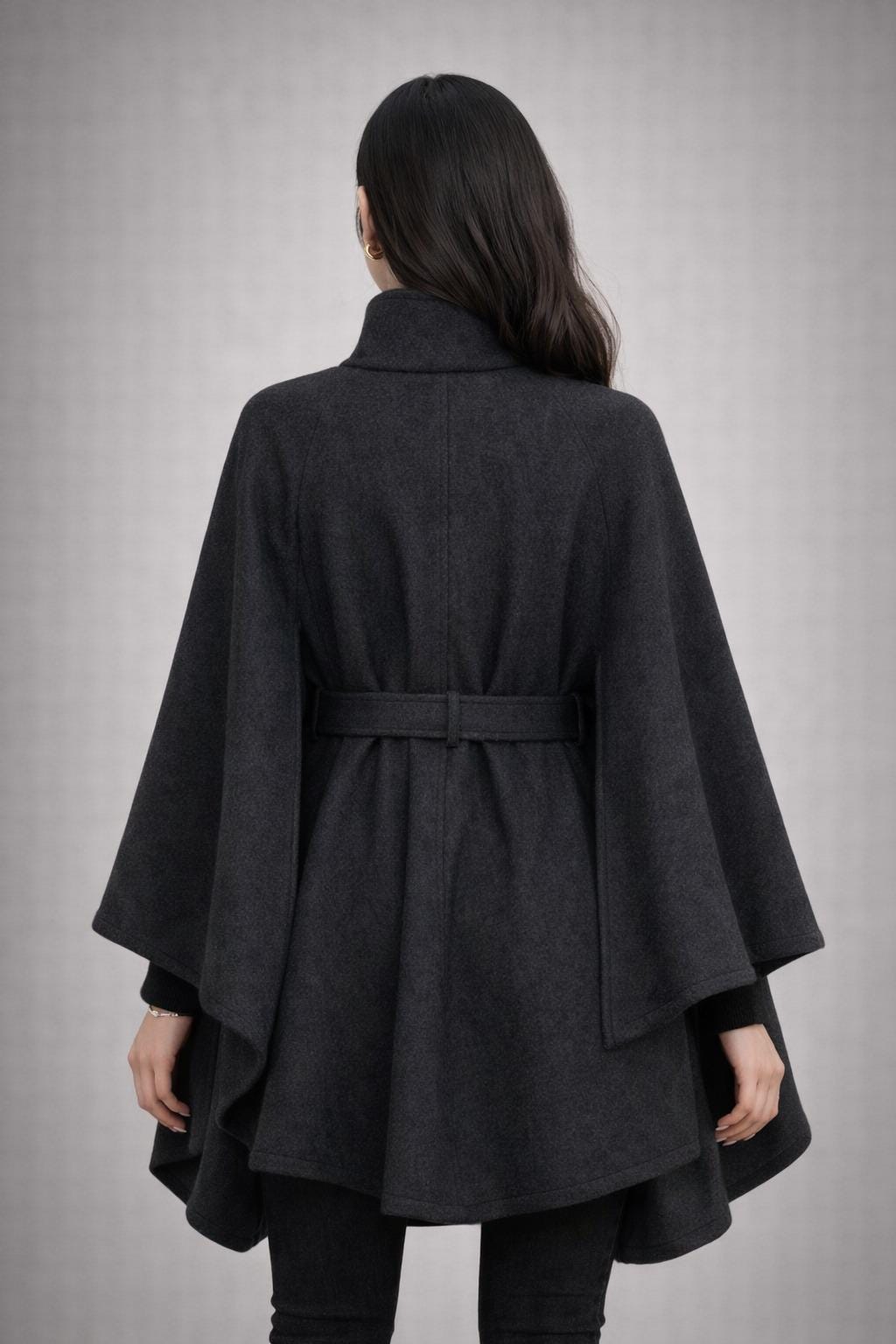 Wool Cape Coat | High Neck Poncho Jacket, Belted Winter Outerwear