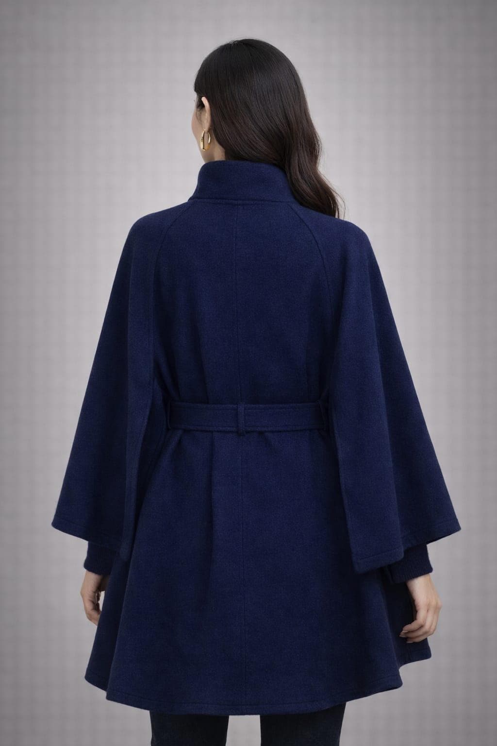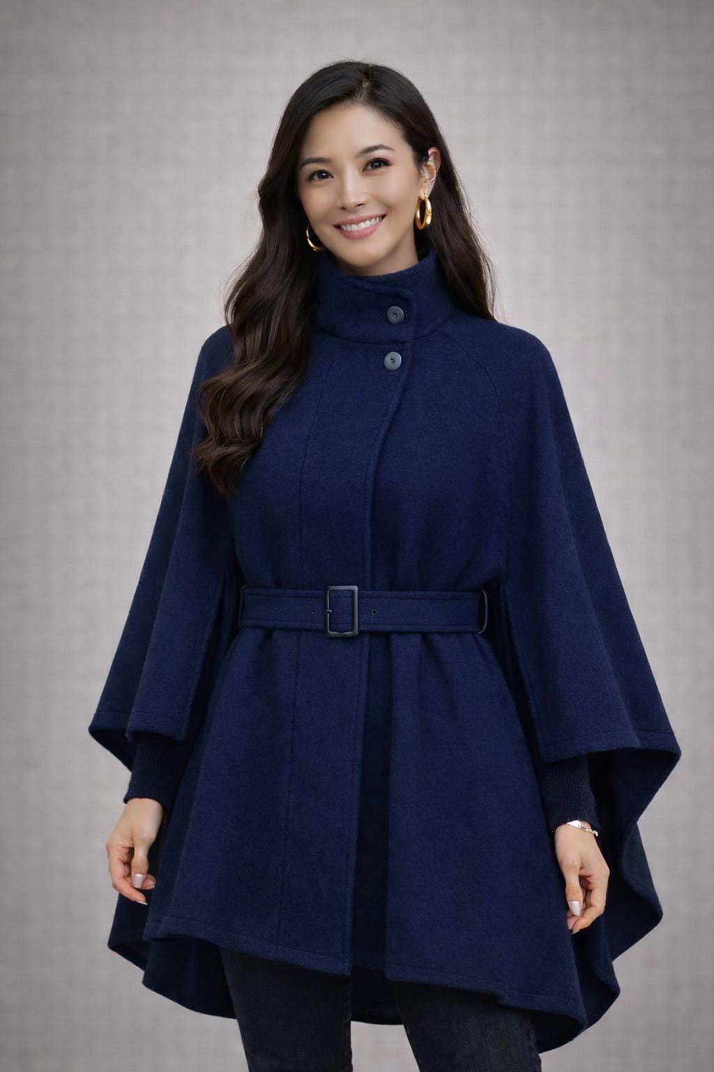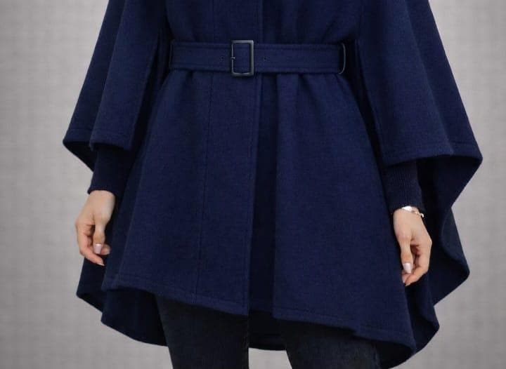 Whether you’re looking for a chic statement piece or versatile outerwear, this navy cape coat blends style, comfort, and elegance.