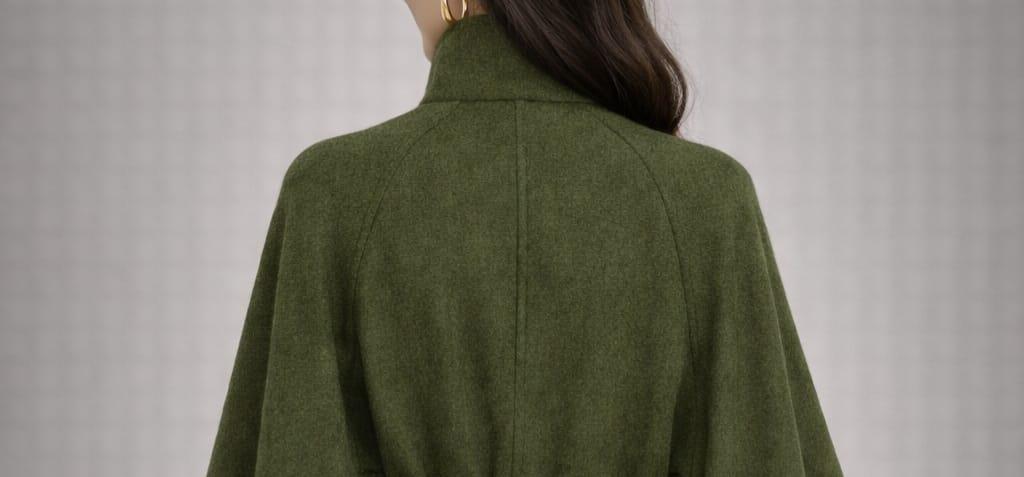 Wool Blend Green Cape Coat – Belted High Neck Poncho Jacket