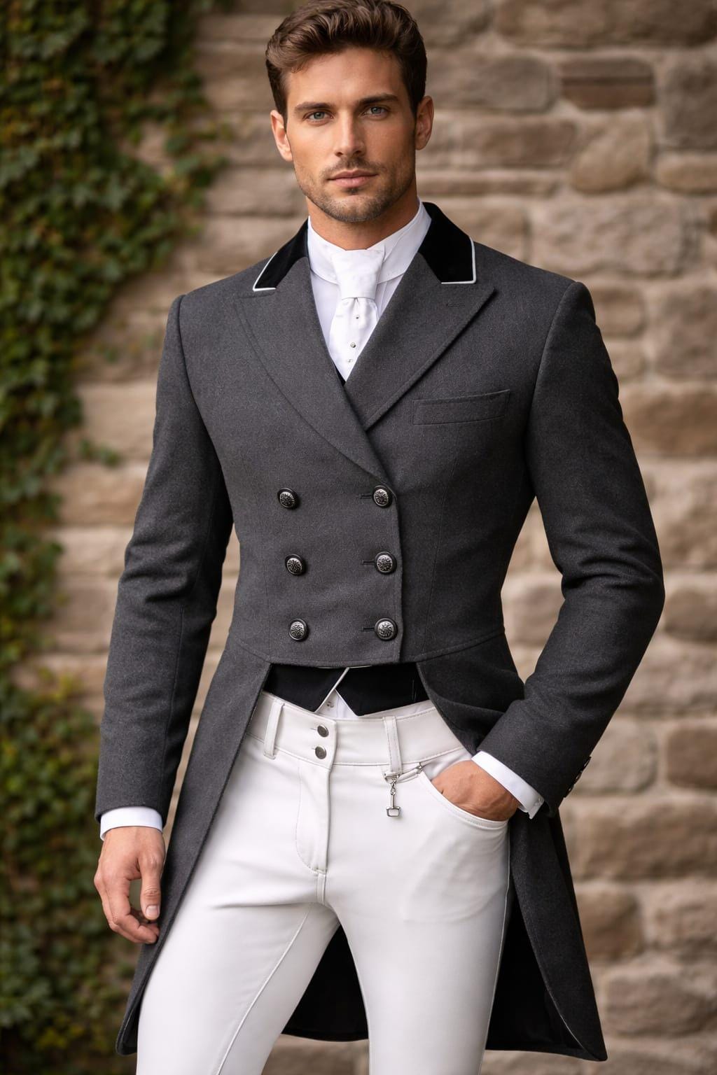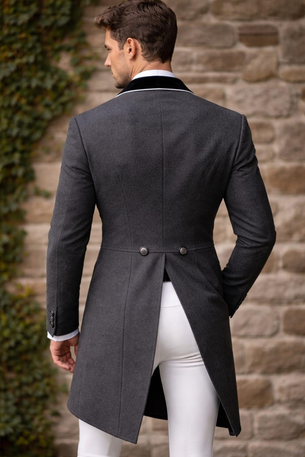Men's Charcoal Wool Blend Victorian Tailcoat – Double Breasted Formal Wedding Jacket