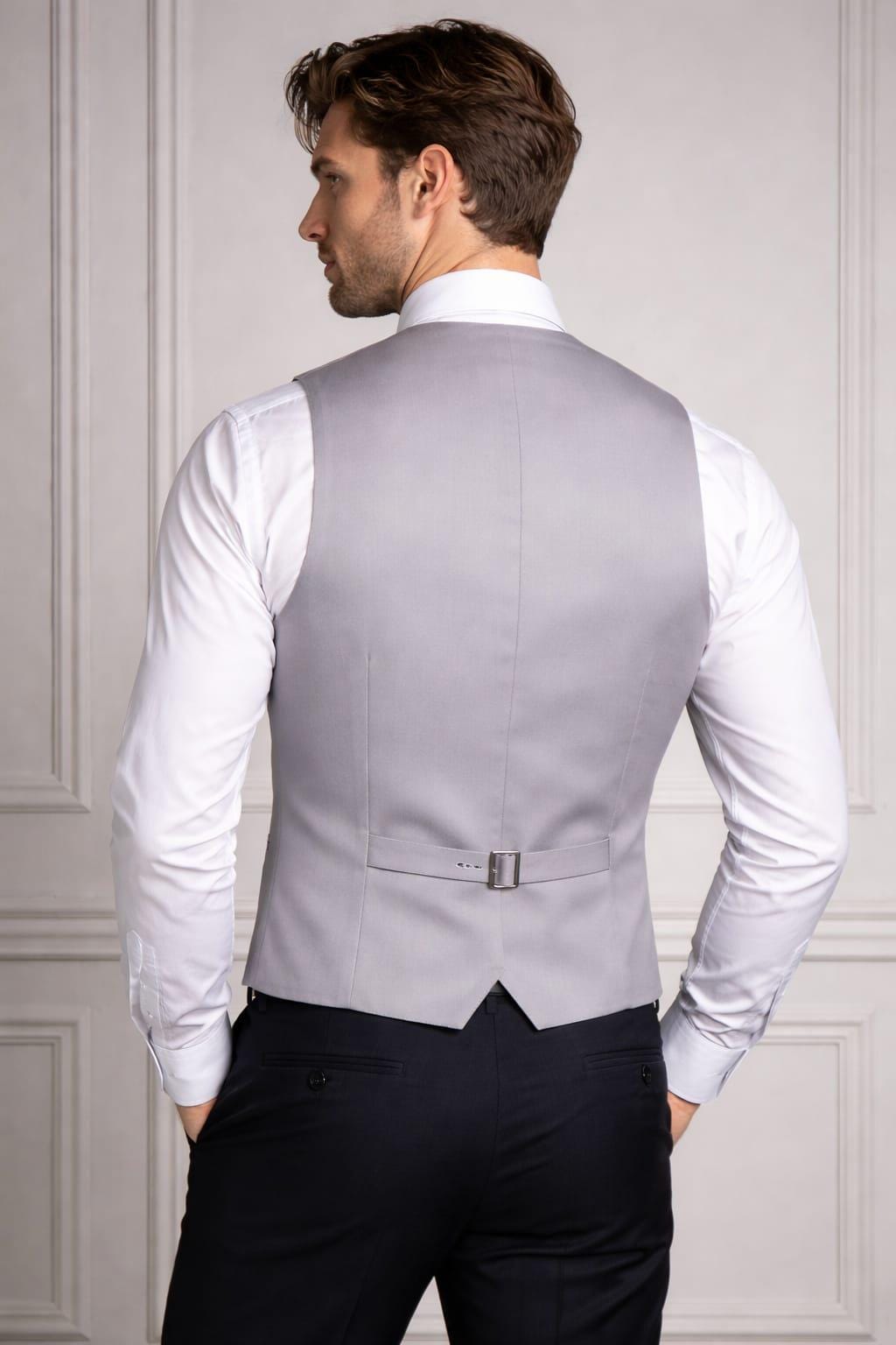 Men's Light Grey Slim Fit Formal Wedding Suit Vest Tailored Business Waistcoat