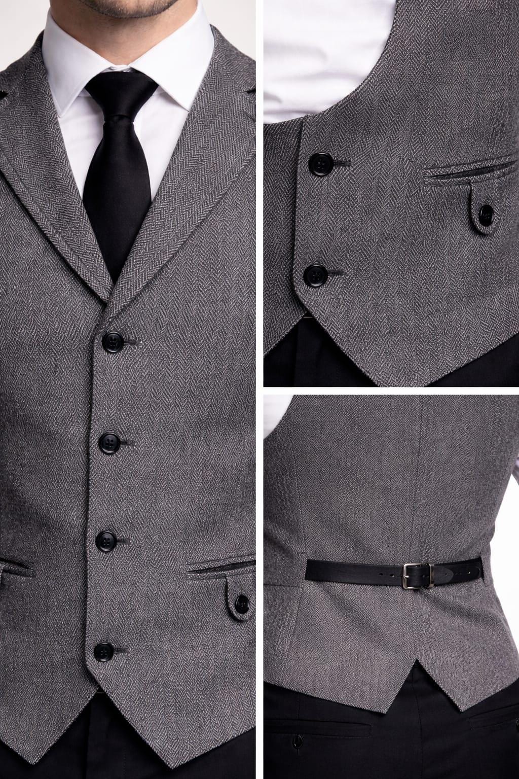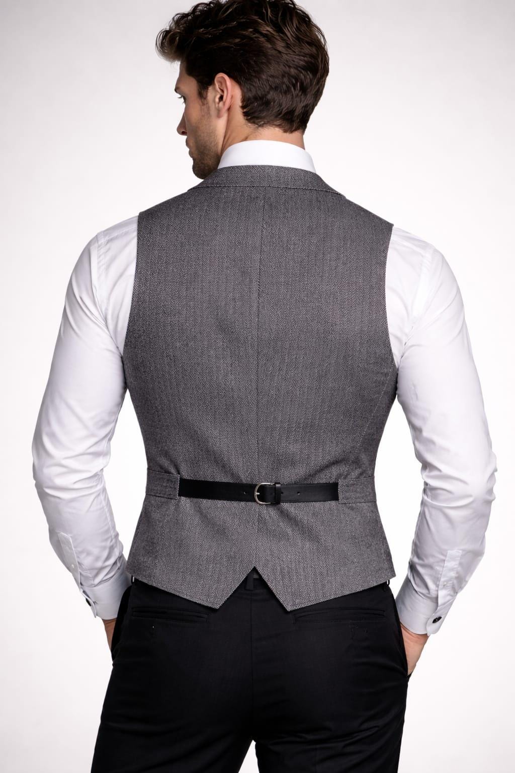 Men’s Grey Herringbone Tweed Waistcoat – Classic Formal Vest