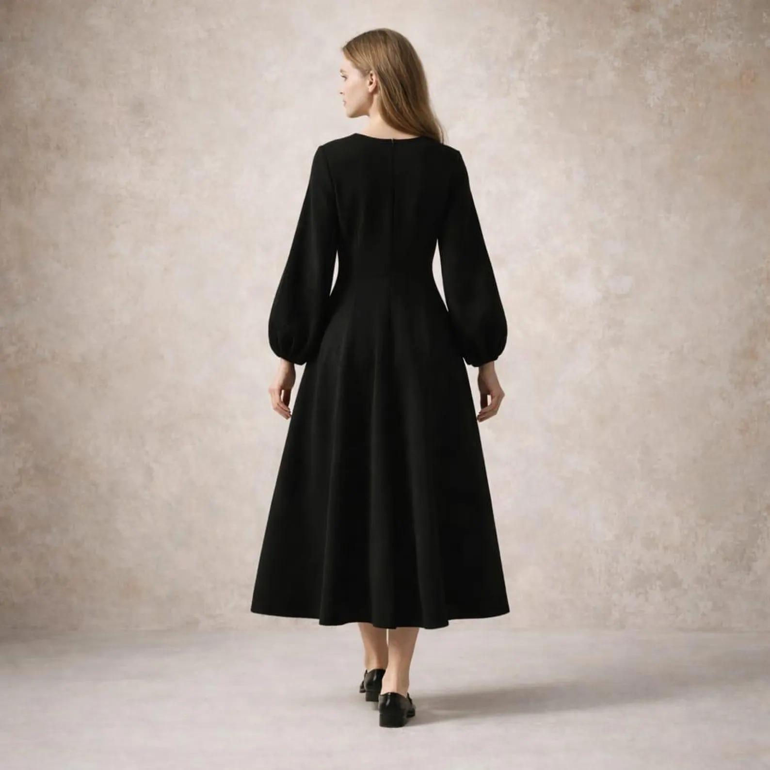 The bishop sleeves add a touch of vintage elegance, making this dress perfect for both casual and formal occasions. Its simple yet sophisticated design makes it ideal for evening events, formal gatherings, dinners, and special occasions.
